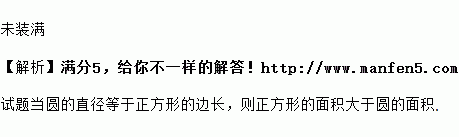 有底面为正方形的直四棱柱容器A和圆柱形容器B,容器材质相同,厚度忽略不计.如果它们的主视图是完全相同的矩形,那么将B容器盛满水,全部倒入A容器,问:结果会 (“溢出”、“刚好”、“未装满”,选一个)