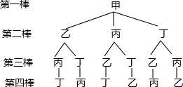 解答:甲跑第一棒有6种情况,同理,乙丙丁跑第一棒也各有6种情况,共有24种情况,其中甲跑第一棒,乙跑第二棒的情况数有2种,所以概率为