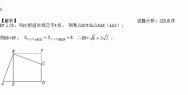 如图,在四边形ABCD中,AB=BC,∠ABC=∠CDA=90°,BE⊥AD于点E,且四边形ABCD的面积为8,则BE=( )