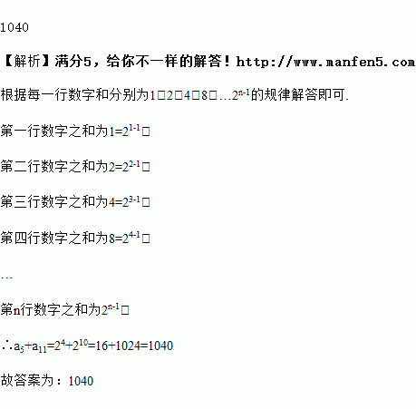 “杨辉三角形”是中国古代重要的数学成就,它比西方的“帕斯卡三角形”早了三百多年,如图是三角形数阵,记an为图中第n行各个数之和,则a5+a11的值为__.