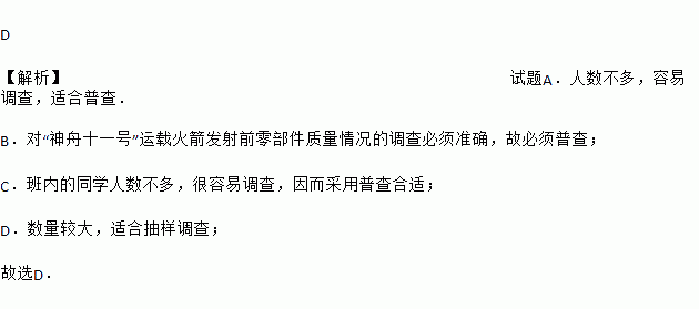 下列调查中,最适合采用抽样调查的是( )