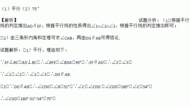 如图, 中,点在边上, ⊥, ⊥,垂足分别是、,∠1=∠2.