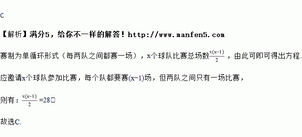 某市体育局要组织一次篮球邀请赛,赛制为单循环形式(每两队之间都赛一场),计划安排28场比赛,设应邀请x个球队参加比赛,则可列方程为( )