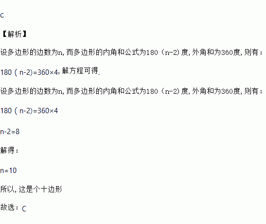 若一个多边形的内角和为外角和的3倍,则这个多边形为 ( )