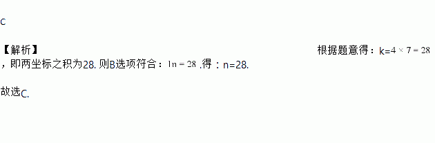 的图象经过点(7,4),若点(1,n)在反比例函数图象上,则n等于( )