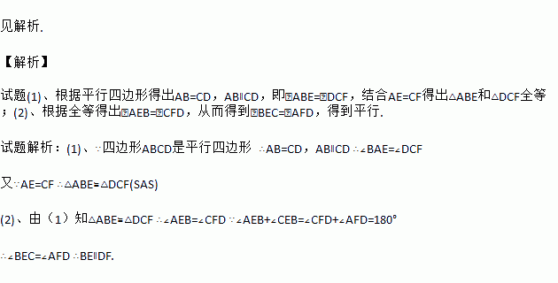 如图,E、F是平行四边形ABCD对角线AC上两点,AE=CF.