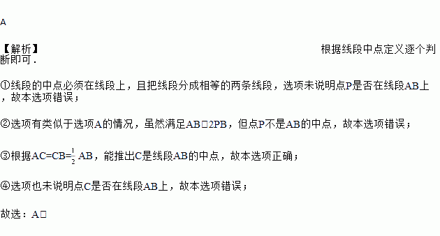 AB,则P是线段AB的中点;②若AB=2PB,则P是线段AB的中点;③若AC=CB=