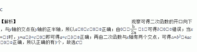 二次函数y=ax2+bx+c(a≠0)的图象如图所示,下列结论:①b<0;②c>0;③a+c<b;④b2﹣4ac>0,其中正确的个数是( )