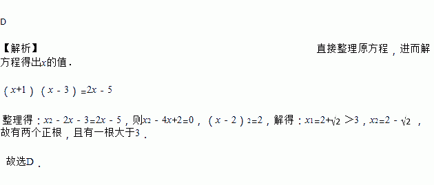C. 有两个正根,且都小于3 D. 有两个正根,且有一根大于3
