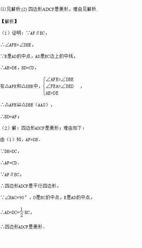 如图,在△ABC中,∠BAC=90°,AD是斜边上的中线,E是AD的中点,过点A作AF∥BC交BE的延长线于F,连接CF.