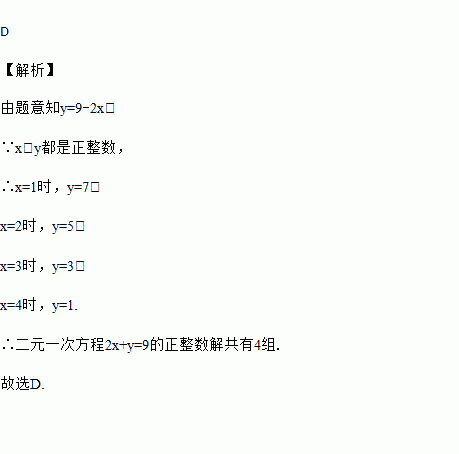 方程2x+y=9的正整数解有( )