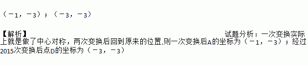 规定:在平面直角坐标系xOy中,“把某一图形先沿x轴翻折,再沿y轴翻折”为一次变化.如图,已知正方形ABCD,顶点A(1,3),C(3,1).若正方形ABCD经过一次上述变化,则点A变化后的坐标为 ,如此这样,对正方形ABCD连续做2015次这样的变化,则点D变化后的坐标为 .