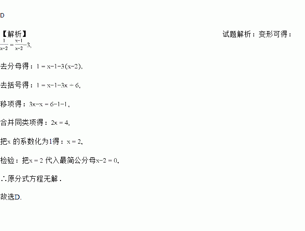 A. x=2 B. x=﹣2 C. x=0 D. 无解