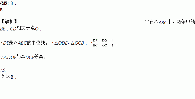 如图,在△ABC中,两条中线BE,CD相交于点O,则S△DOE∶S△DCE=( )