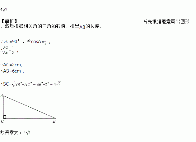 在Rt△ABC中,∠C=90°,cosA=,AC=2,则BC=________.