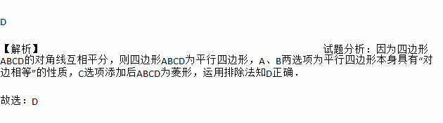 A. AB=CD B. AD=BC C. AB=BC D. AC=BD