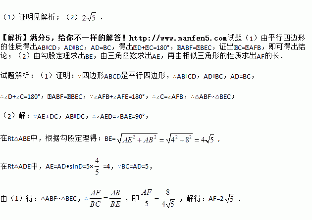 (2)若AD=5,AB=8,sinD=,求AF的长.