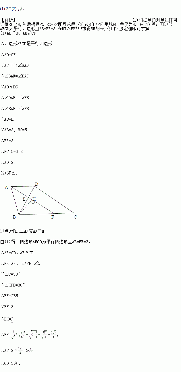 如图,在四边形ABCD中,AD∥BC,AB=3,BC=5,连接BD,∠BAD的平分线分别交BD、BC于点E、F,且AE∥CD
