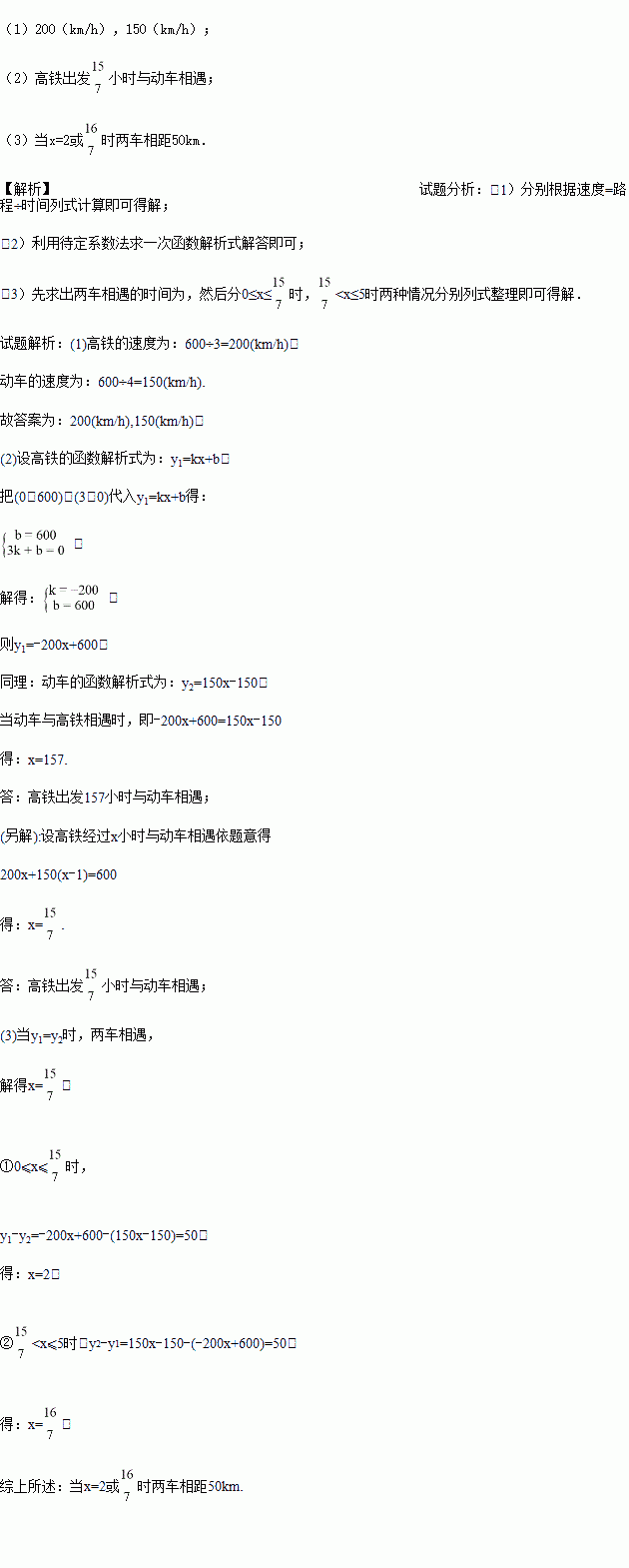 (1)根据图像,高铁和动车的速度分别是_________-;