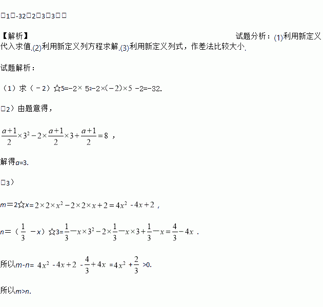-x)☆3(其中x为有理数),试比较大小m n (填“>”、“<”或“=”).