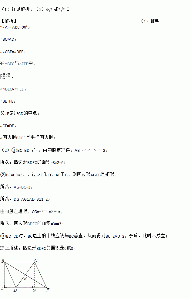(2)若△BCD是等腰三角形,求四边形BDFC的面积.