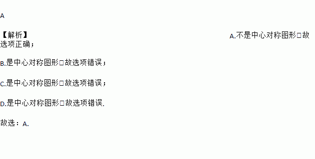 A 【解析】A.不是中心对称图形,故选项正确; B.是中心对称图形,故选项错误; C.是中心对称图形,故选项错误; D.是中心对称图形,故选项错误. 故选:A.