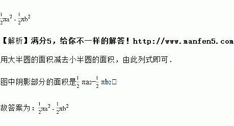 如图,是由两个半圆组成的图形,已知大的半圆的半径是,小的半圆的半径是,则图中阴影部分的面积是________.