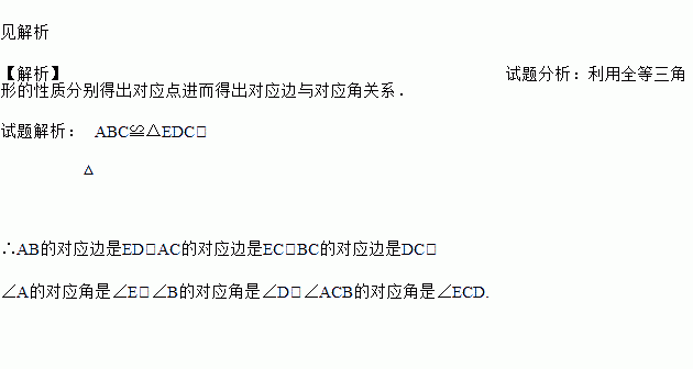 如图,已知△ABC≌△EDC,指出其对应边和对应角.