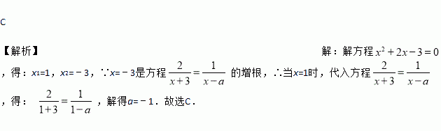 若关于x的方程x2+2x-3=0与有一个解相同,则a的值为( )