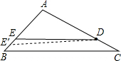 7.分析 为两种情况:①∠ADE=∠C,根据△ADE∽△ACB,得出$\frac{DE}{BC}$=$\frac{AD}{AC}$,代入求出DE即可;②∠ADE′=∠B,根据△ADE∽△ABC,得出$\frac{AE}{AC}$=$\frac{AD}{AB}$,代入求出AE>AB.