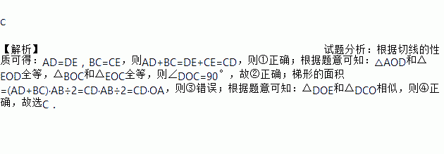 ①AD+BC=CD;②∠DOC=90°;③S梯形ABCD=