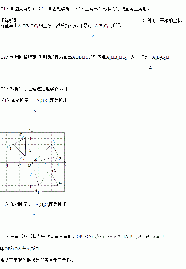 (1)将△ABC向下平移5个单位后得到△A1B1C1,请画出△A1B1C1;