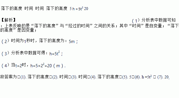 果子成熟后从树上落到地面,它落下的高度与经过的时间有如下的关系: