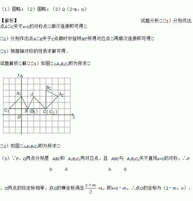 (3)设P、Q两点分别是△ABC和△A1BlC1两对应点,已知P点坐标为(m,n),写出点Q的坐标.