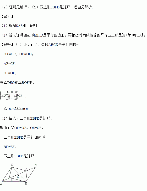 (2)若BD=EF,连接DE,BF.判断四边形EBFD的形状,并说明理由.