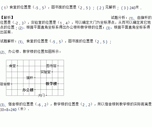 如图,是学校的平面示意图,已知旗杆的位置是(-2,3),实验室的位置是(1,4).