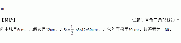 直角三角形斜边上的高与中线分别是5 cm和6 cm,则它的面积是_________cm2 .