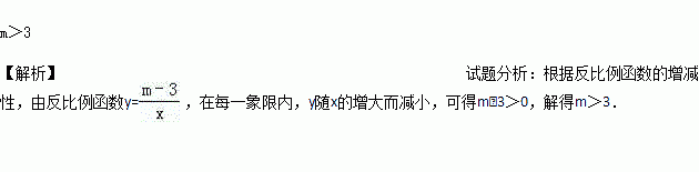 反比例函数y=,在每一象限内,y随x的增大而减小,则m的取值范围____.