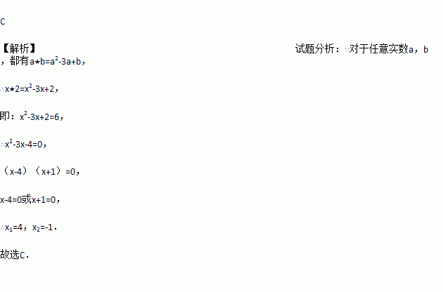 现定义运算“★”,对于任意实数a,b,都有a★b=a2-3a+b,如:3★5=32-3×3+5,若x★2=6,则实数x的值是 ( )