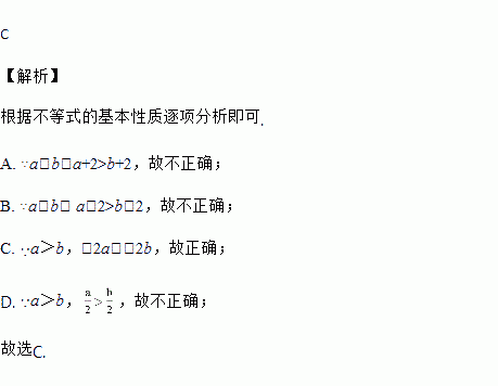 A. a+2<b+2 B. a﹣2<b﹣2 C. ﹣2a<﹣2b D.