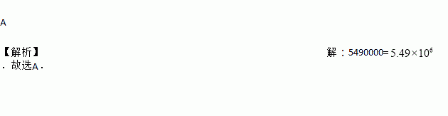 据国家统计局统计,我国2017年全年的棉花总产量约为5490000吨.将5490000这个数用科学计数法表示为( )