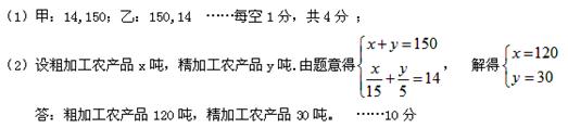 司从市场上收购了农产品150吨,并用14天加工完这批农产品.根据题意,甲、乙两名同学分别列出的方程组(部分)如下: