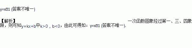 写出一个一次函数,使它的图象经过第一、三、四象限:______.