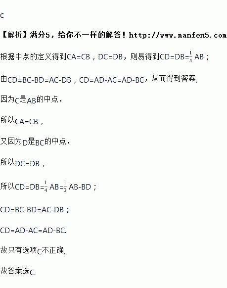 如图,C是AB的中点,D是BC的中点,下列等式不正确的是( )