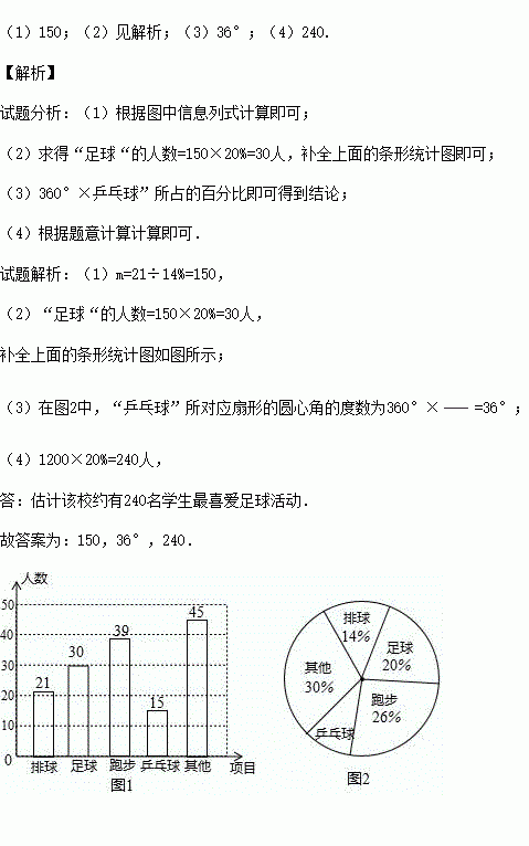 (4)已知该校共有1200名学生,请你估计该校约有 名学生最喜爱足球活动.