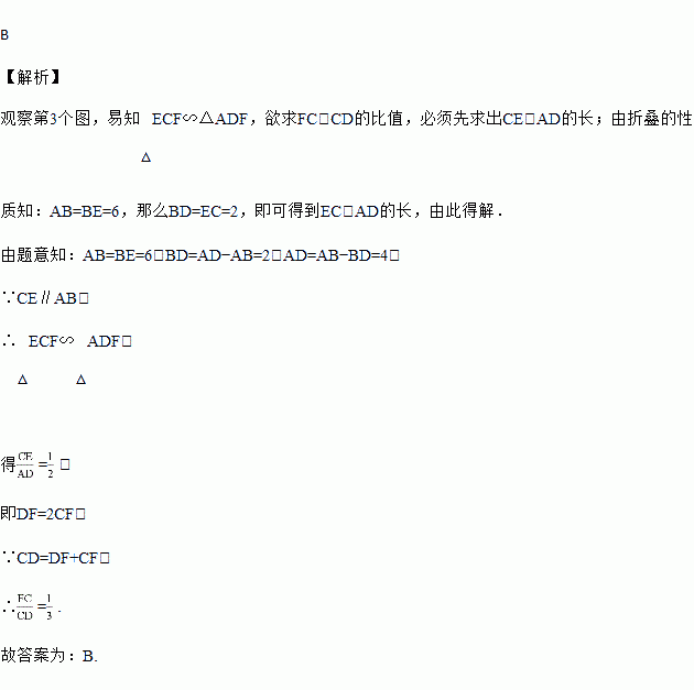 如图,有一矩形纸片ABCD,,,将纸片折叠,使AB落在AD边上,折痕为AE,再将以BE为折痕向右折叠,AE与DC交于点F,则FC:CD的值是