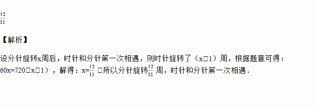 周,甲、乙第一次相遇,…,以此探究正常走时的时钟,时针和分针从0点(12点)同时出发,分针旋转________周,时针和分针第一次相遇.