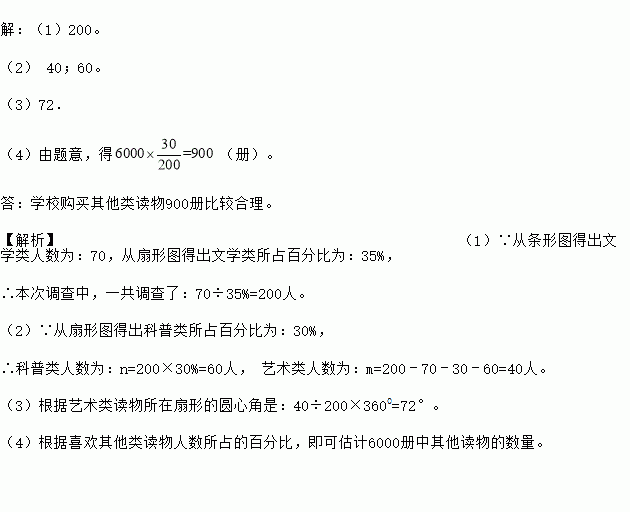 (3)扇形统计图中,艺术类读物所在扇形的圆心角是 度;