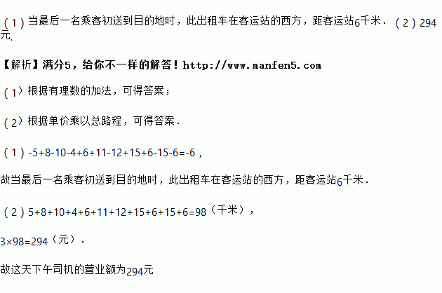 一出租车司机从客运站出发,在一条东西向的大街上拉乘客.规定客运站向东为正,向西为负,第一位乘客从客运站上车后,这天下午行车里程如下,(单位:千米)