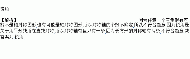 在任意三角形、锐角、长方形三种图形中,有且只有一条对称轴的是______.